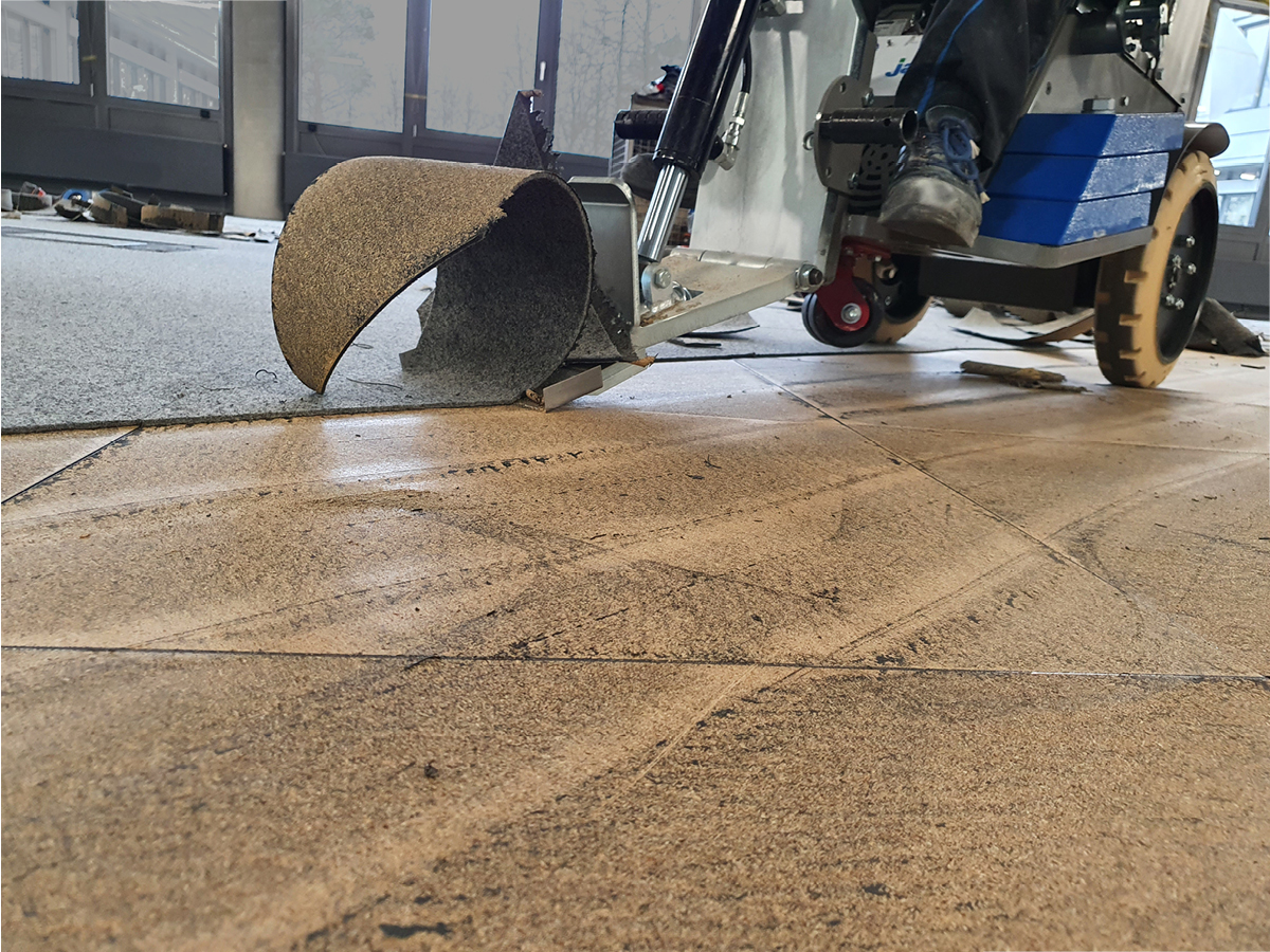 Fest verklebte Beläge erfordern Maschinen mit großer Leistung und hoher Schlagkraft. Die Entfernung von Kleberresten ist oft genauso anspruchsvoll wie das Lösen des eigentlichen Belags. - Sicherheit und Ergonomie: