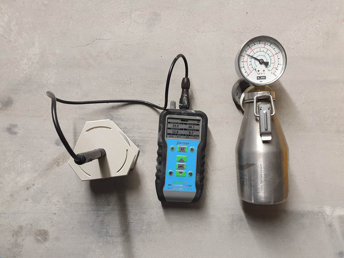 CM und KRL-Messung können auf der Baustelle parallel durchgeführt werden, an einer Probenentnahmestelle. Die Kombination der beiden Methoden gibt mehr Sicherheit und kann vor Reklamationen durch Feuchteschäden schützen.