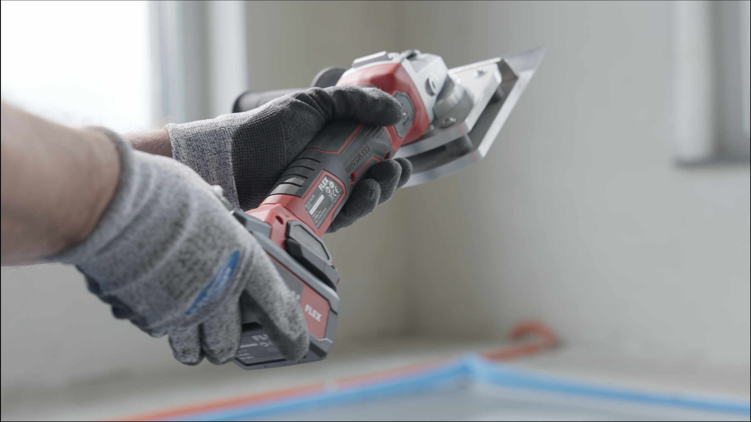 Ein handliches Akku Gerät zum Entfernen von Schaumbelägen und Kleberresten auf kleinen Flächen und an der Wand.